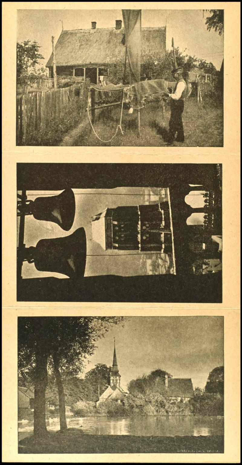 1934, winter help work: vertical strip of three with the pictures (top down) : #14 Oldest fishermans house by Bohnsack, 15 Gdansk: St. Marien from town hall tower, and #16 Danziger LOW-LYING AREA: cottage Herzberg (postage stamp impression), unused, good condition, in fact rare! (HP1-14/15/16) (Image 1)(Image)