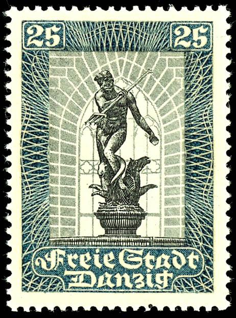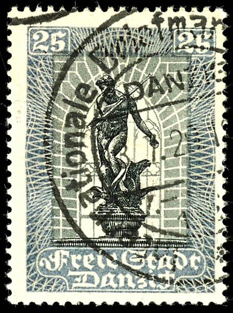 25 Pfg neptune well dark gray blue / black with special cancel international Briefmar (. ) Gdansk 13.7.29, superb, signed Kniep BPP (219c) 25 Pfg Neptunbrunnen dunkelgraublau/schwarz mit Sonderstempel Internationale Briefmar(...) DANZIG 13.7.29, Pracht, signiert Kniep BPP (Image)