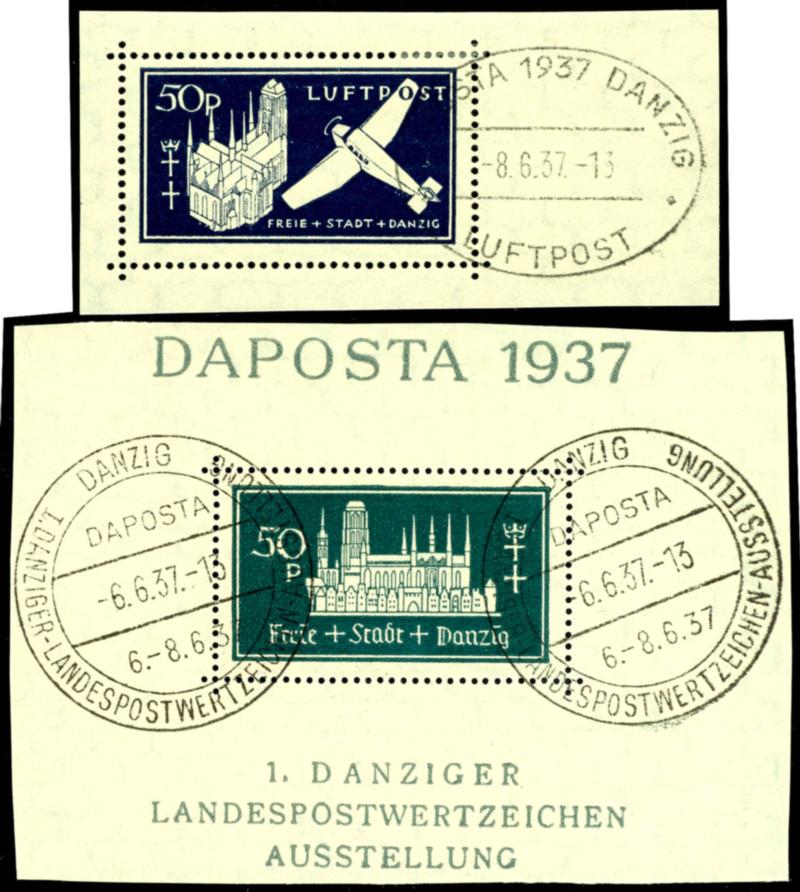 50 and 50 penny DAPOSTA, souvenir sheet cuts, used, perfect, Michel 110,- (270/71a) 50 und 50 Pfennig DAPOSTA, Blockausschnitte, gestempelt, einwandfrei, Mi. 110,- (Image)