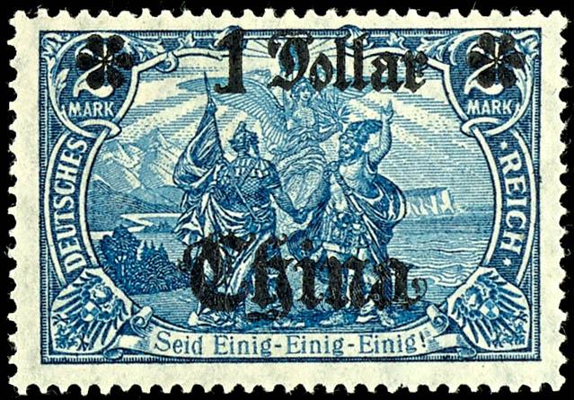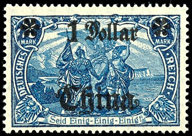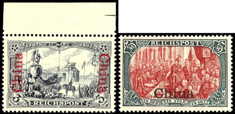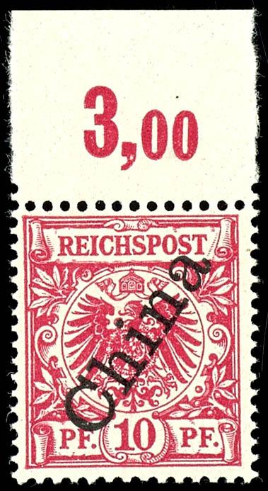 10 Pfennig Krone/Adler mit steilem Aufdruck "China", Oberrandstück (dort Falzrest), Marke postfrisch, tadellose Erhaltung, unsigniert, Fotobefund Michael Jäschke-Lantelme BPP, Mi. 280.- (Image 1)(Image)