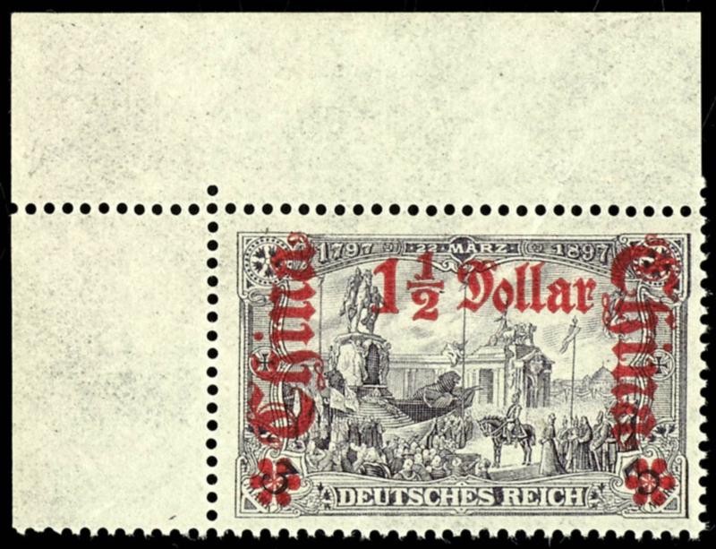 1 Dollar auf 2 Mark, Kriegsdruck, 25 : 17 Zähnungslöcher, Wertaufdruck nach rechts, Abstand 10,2 mm, postfrisch, tadellose Erhaltung, seltene Marke, unsigniert, Fotoattest Michael Jäschke-Lantelme BPP "in fehlerfreier, postfrischer Erhaltung.", Mi. 480.- (Image 1)(Image)