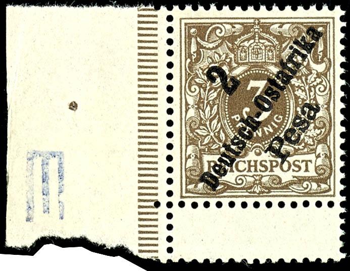 2 Pesa auf 3 Pfennig Krone/Adler mittelbraun, anhängender Zwischensteg und Bogenrand (dort Falzrest), Marke postfrisch, tadellose Erhaltung, unsigniert, Fotobefund Michael Jäschke-Lantelme BPP (2025) "in fehlerfreier, postfrischer Erhaltung.", Mi. 250.- (Image 1)(Image)