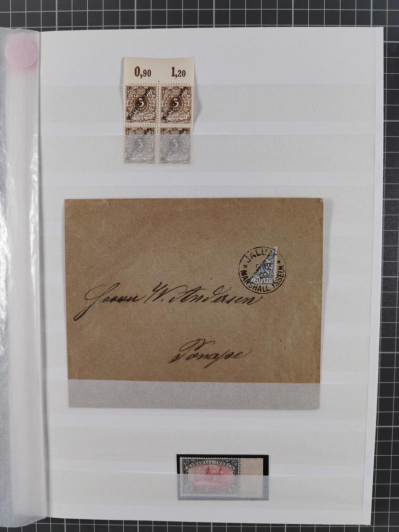 1873/1914 (ca.), interessante kleine Partie mit u.a. 12 Briefen und Karten, dabei DPT Farbfrankatur V1+19 (je 2), Vorläufer Samoa, Mitläufer-Paketkarte DSW, etc.