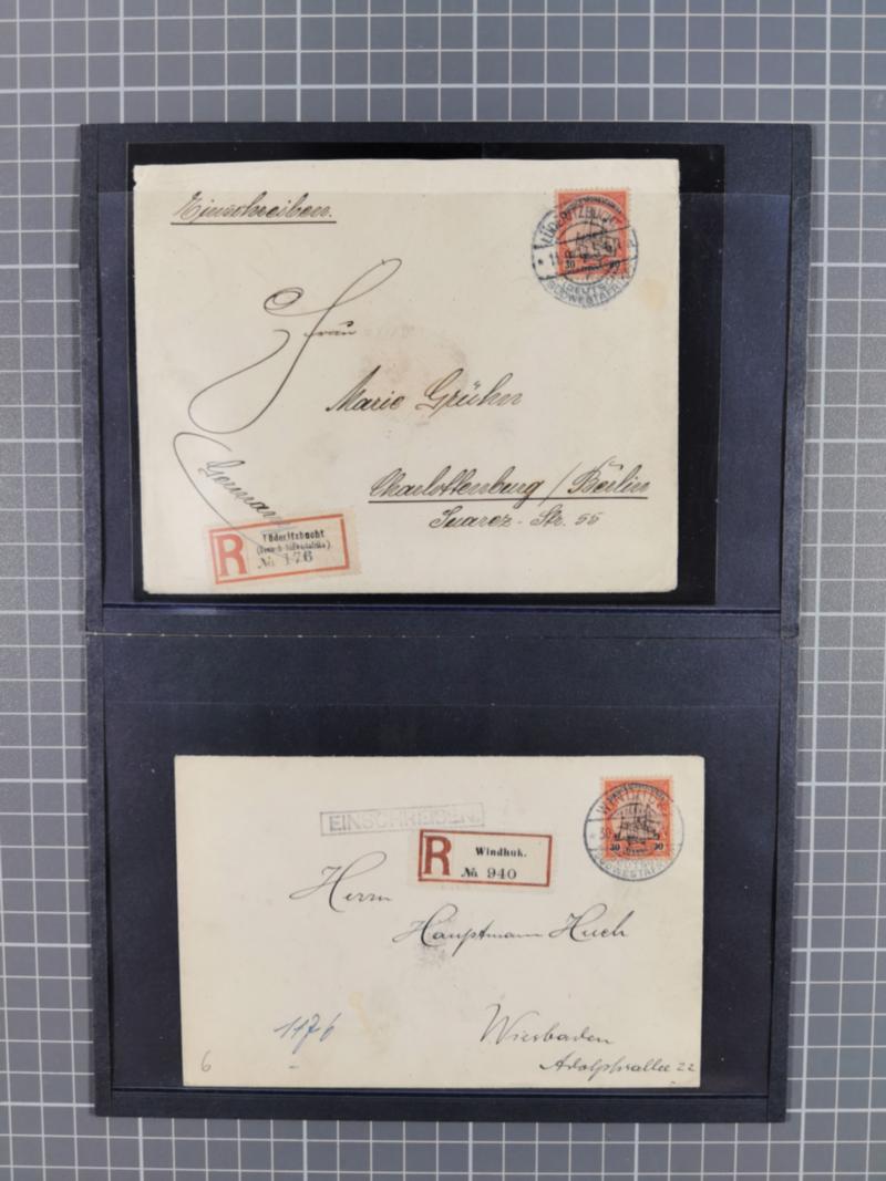 1901/13 Partie mit 11 R-Briefen, dabei u.a. DP Türkei Mi.-Nr.17I auf R-Brief von Jaffa, DSWA mit zwei R-Briefen mit EF Mi.-16 und Kamerun Mi.-Nr. 16 auf zwei R-Briefen von Duala bzw. Longji, in guter Erhaltung