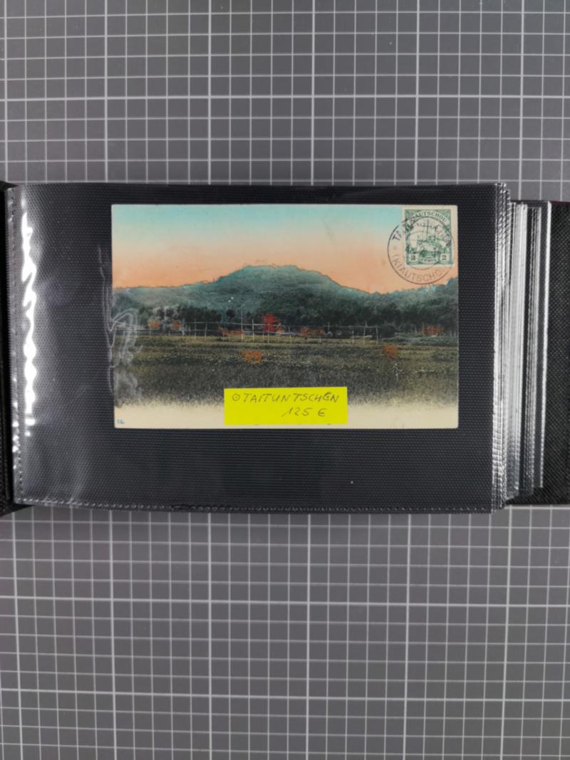 China und Kiautschou, Briefalbum mit 45 Briefen, Karten, AK mit 2 Lithos, GZ, FP, dabei 16 x Marineschiffspost meist Boxeraufstand, bessere Stempel, meist gute Erhaltung