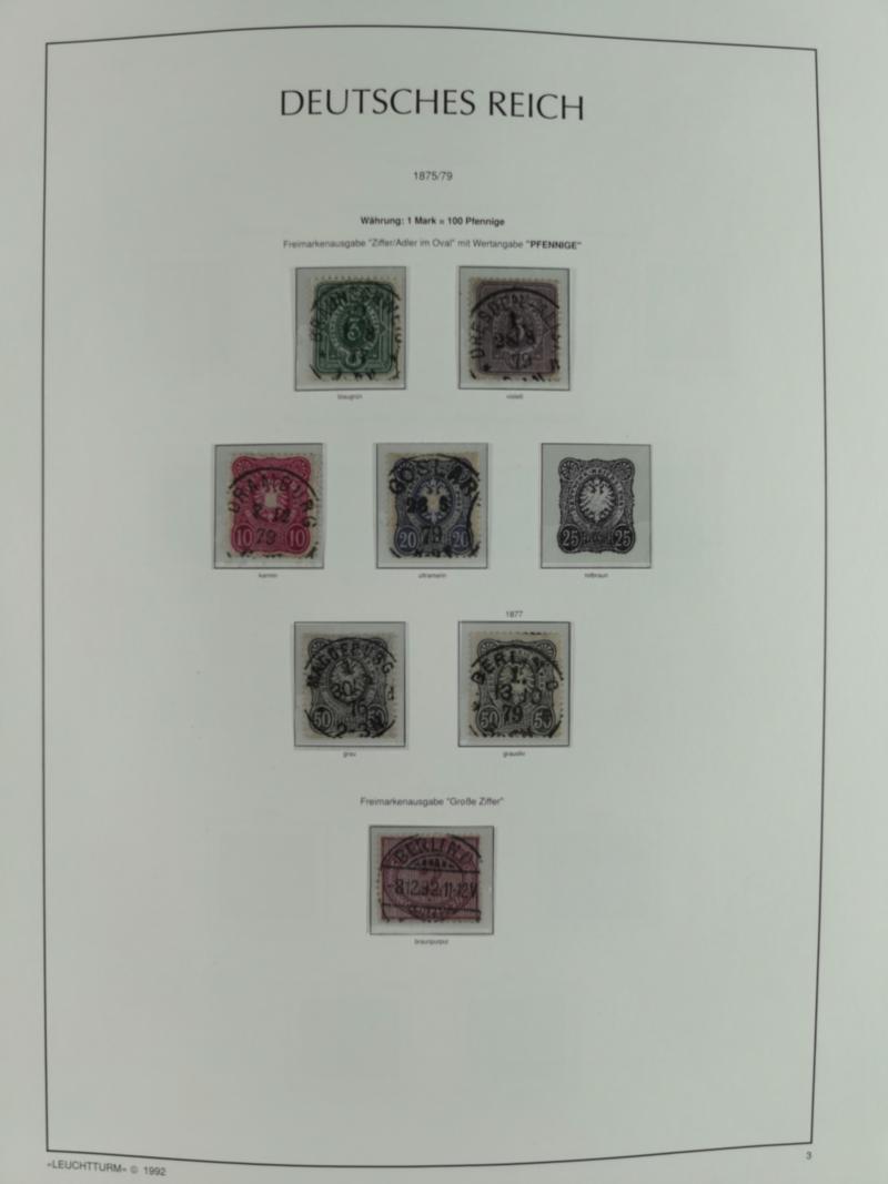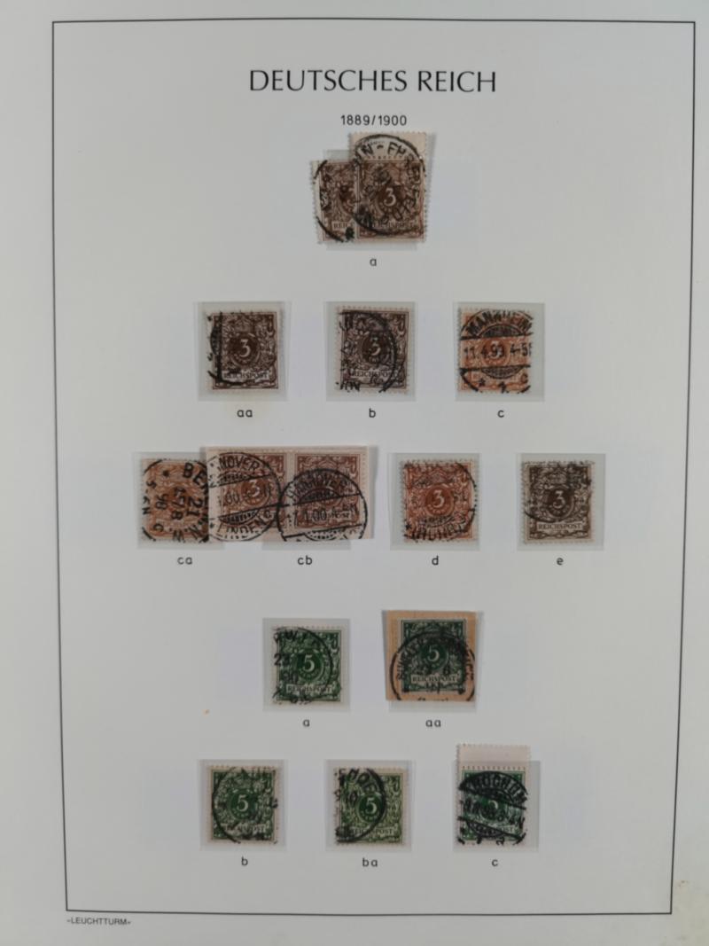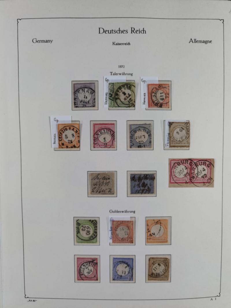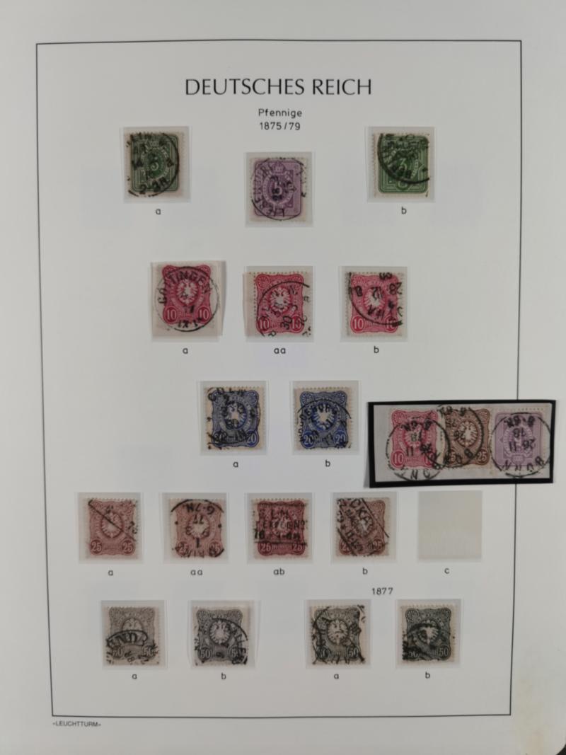 1872/1945, gestempelte reichhaltige Sammlung in 3 Bänden, vor 1900 stark spezialisiert mit Stempelbesonderheiten, Plattenfehlern, Farben, Einheiten, etc., danach u.a. Mi. 66 I, Infla mit besseren Farben, alle Zeppeline, etc. Die Erhaltung ist sehr unterschiedlich, aber viel schönes und sauberes Material dabei. Vieles geprüft, einige Befunde und ein Attest.