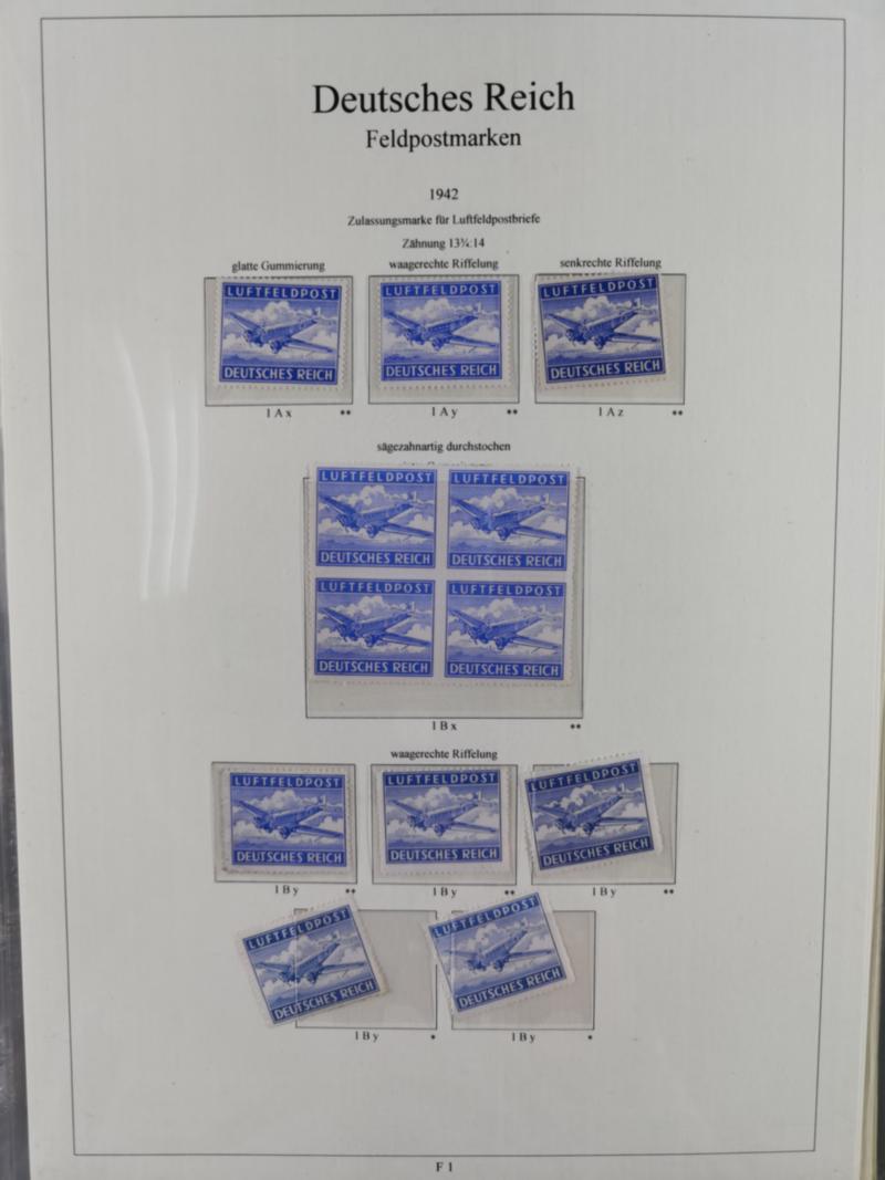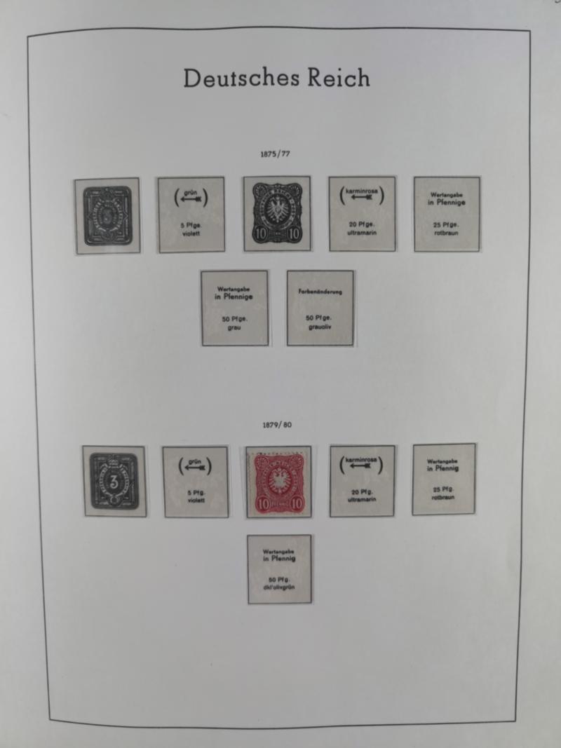 1872/1945, in den Hauptnummern augenscheinlich komplette ungebrauchte/postfrische und gestempelte Sammlung inkl. Block 1-11 und Dienstmarken, dabei neun Zeppelinbriefe und -karten, Mi.-Nr. 8 sign. Sommer BPP, 11 sign. Sommer BPP, 14 Briefstück (Befund Hennies BPP), 24 (FB Sommer BPP), 27b (Befund Hennies), sowie einige postfrische Brustschilde, 97Ia sign. Dr. Hochstädter BPP, Flugpost I-V, VI postfrisch (sign. Rohr), 423-24 sowie 455 gestempelt sowie die Mi. 423, 424, Südamerikafahrt und Polarfahrt je als Einzelfrankatur auf Karte bzw. Brief, ferner Bl. 1 (Herzstück postfrisch), Bl. 2 (Herzstück postfrisch), Chicagofahrt gestempelt (sign. Schlegel BPP), Bl. 3 gestempelt, 600-02 auf R-Brief mit Olympia-Maschinenstempel "Leipzig C2 / Garmisch - Partenkirchen” und Einlieferungsschein, Dienstmarken Mi. 1-14 ungebraucht, etc., anfangs leicht unterschiedliche, sonst gute Erhaltung, im Vordruckalbum