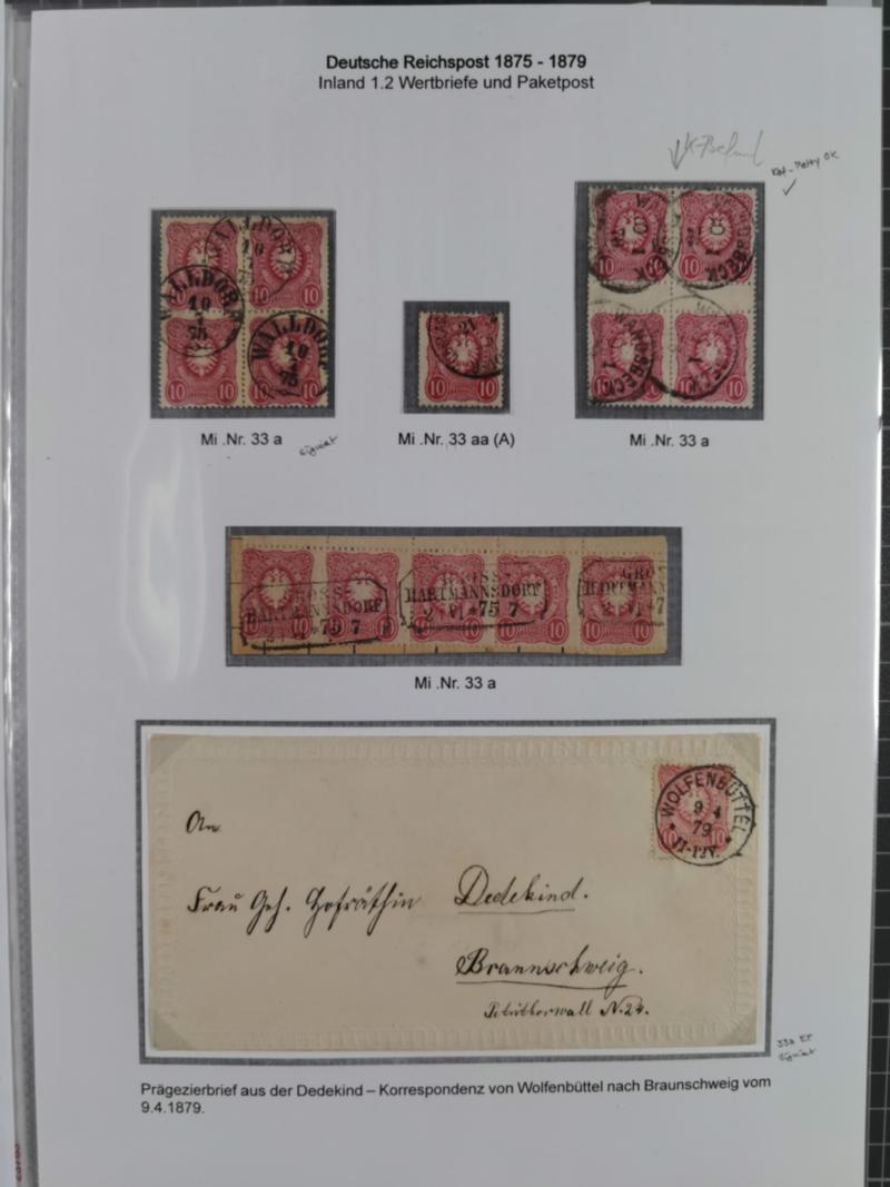 1875/79, ungebraucht/postfrische und zusätzlich gestempelte Sammlung inkl. Mi.-Nr. 37 mit 6 Briefen/Paketkarten, dabei Farben, Einheiten, Zwischenstegpaare usw. mit u.a. Mi.-Nr. 31a postfrisch (FB Petry BPP), Mi.-Nr. 33a postfrisch (FB Petry BPP), Mi..-Nr. 33a mit Ersttag-Stempel auf Briefstück, Mi.-Nr. 34bZS gestempelt (FA Petry BPP), Mi.-Nr. 35a zweimal ungebraucht (FA/FB Petry BPP), Mi.-Nr. 36a ungebraucht (1 Zahn repariert, FB Petry BPP), Mi.-Nr. 36a im gestempelten 8er-Block (FB Petry BPP), Mi.-Nr. 37aND ungebraucht (FA Petry BPP), zwei Paketkarte mit Mischfrankatur Mi.-Nr. 37a und Mi.-Nr. 37a im 6er-Block mit hds. Entwertung (FB Petry BPP). Meist signiert bzw. mit KB, FB und Fotoattesten, ex Sammlung "Baghira”