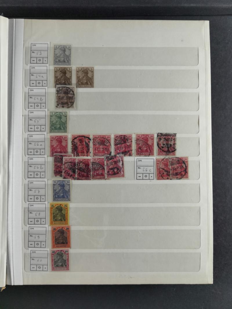 1872/1923 (ca.), gestempelte Sammlung mit einigen Belegen, inklusive Dienstmarken, mit Farben und Einheiten, viele Stempel mit klare Abstempelungen, schöner Teil Infla mit u.a. Mi.-Nr. 118b mit Zufrankatur auf Brief (signiert Infla-Berlin), D65 im senkrechten Paar und D88 gestempelt (signiert Infla-Berlin), etc., teils signiert sowie FB, die Erhaltung ist unterschiedlich, sauber im Steckbüchern