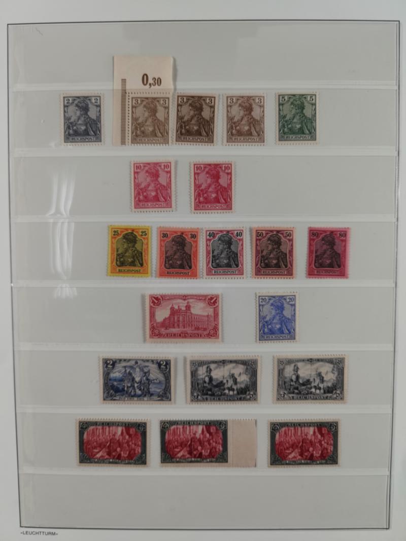 1872/1923, gestempelte und ungebrauchte/postfrische Sammlung im Steckbuch, parallel in beiden Erhaltungen geführt, Brustschilde bis auf MiNr. 24+28 in den Hauptnummern komplett, das weitere Kaiserreich mit Farben spezialisiert mit Farben gesammelt, hier mit MiNr. 33aa, 35b, 36b, 38b, 46ba, 49aa, 50ab, 66 (2), 81Aa je gestempelt, 96AIa ungebraucht, 97AIa gestempelt, 94AII postfrisch, 95AII postfrisch, 97AII postfrisch, sodann die Inflationsausgaben in ähnlicher Struktur, wenn erforderlich signiert BPP bzw. Infla, meist gute Erhaltung.