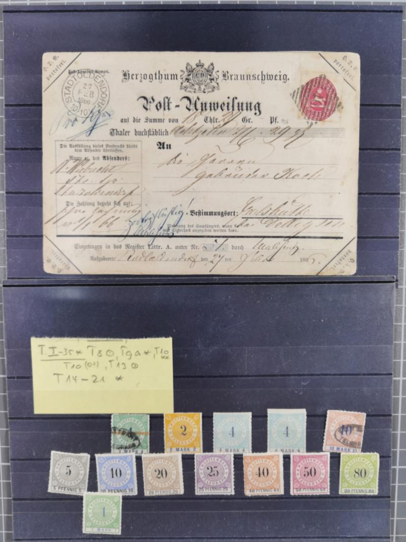 1850/66 (ca.), rund 50 Briefe und Ganzsachen, dabei interessante Stücke wie Braunschweig Mi. 10 im Paar auf Brief, Hannover 11 auf Brief in die USA und Eckrand-5er-Streifen Mi. 23 auf Brief nach Russland, Mecklenburg-Brief nach Schleswig, etc. Etwas unterschiedliche aber meist gute Erhaltung.