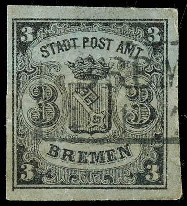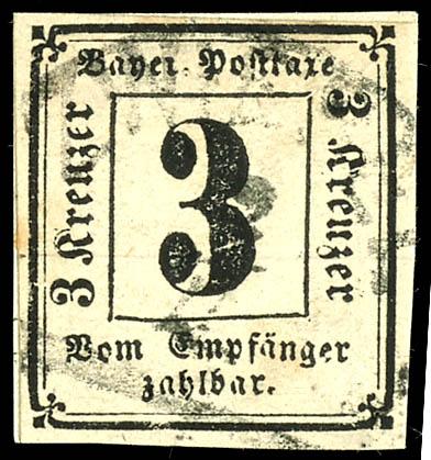 3 Pf. Gray burelage, sound with on all sides margin on piece, M. 450.- (8b)