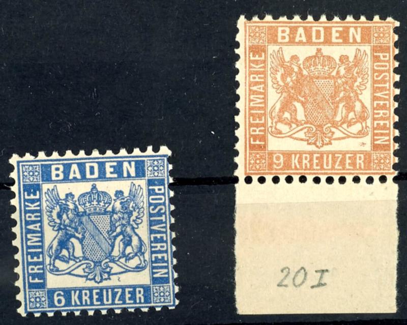6 Kreuzer and 9 Kreuzer crest issue, perforated, mint never hinged, very fine, unsigned. (19,20)
