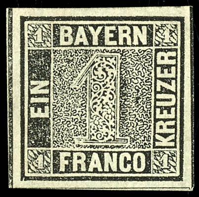 1 Kreuzer black, plate 1, fresh colours with enormous margins extremely fine copy with going through dividing lines at three sides, unused without gum, photo expertize Franz Stegmueller BPP "fresh colours and fine, very fine. " (1Ia) Certificate