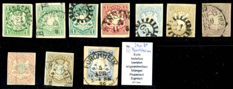 1 Kreuzer - 18 Kreuzer Wappen geschnitten, Prachtsatz, Nr. 19 sign. Gebr. Senf / Leipzig, die 1 Kr. in allen drei Farben, Mi. 650.- (Image 1)(Image)