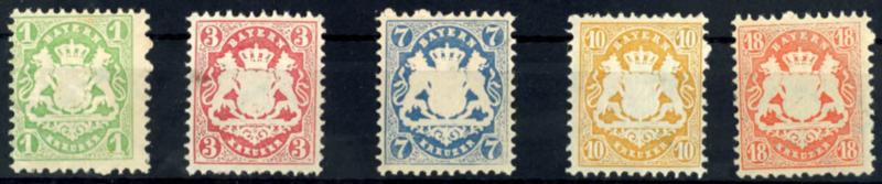 1 Kreuzer to 18 Kreuzer coat of arms, complete set with 5 values, mint never hinged, very fine, Michel 180.- (32/36)