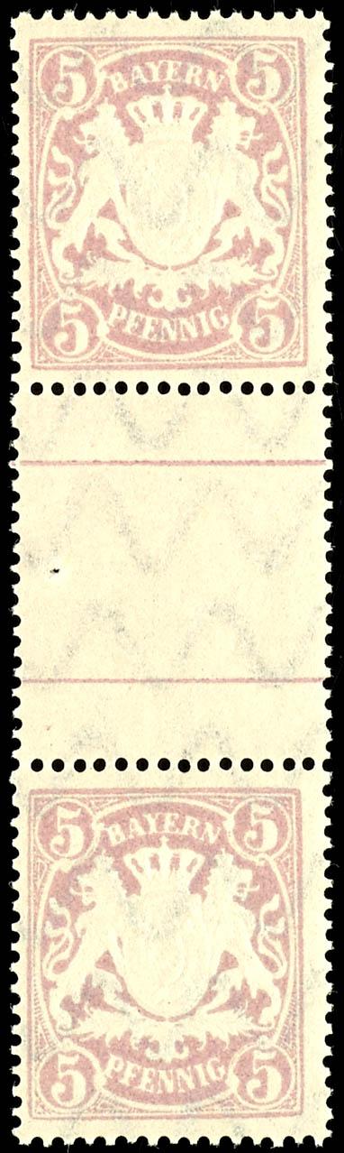 5 pfennigs bright brown purple, mint never hinged pair in outstanding quality with gutter, unfolded, unsigned, in fact rare, Michel 600.- (55BXaZSI)
