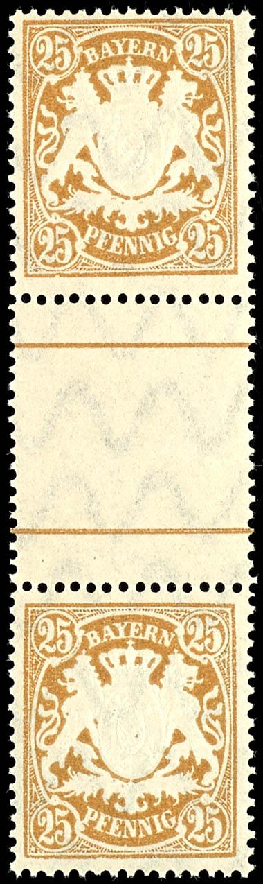 25 Pfennig braun, postfrisches Luxuspaar mit Zwischensteg in Type I, ungefaltet, unsigniert, Mi. 700.- (Image 1)(Image)