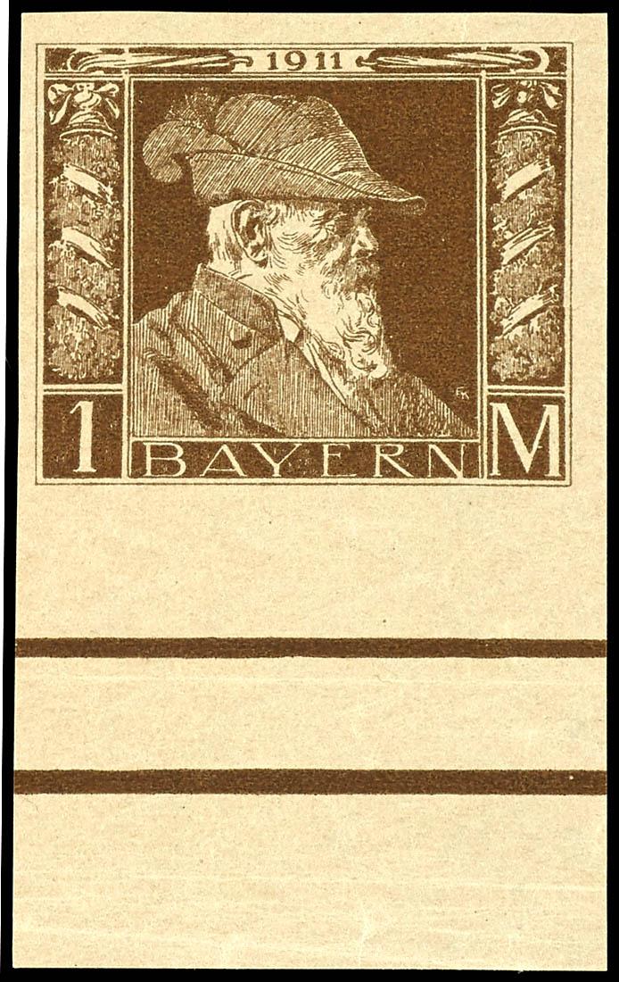 1 Mark Prinzregent Luitpold, Type II, ungezähnt, postfrisch, kleiner Papierknitter, darüber hinaus tadellose Erhaltung, geprüft Dr. Helbig BPP und Fotoattest Josef Bauer BPP (2023), Mi. 750.- (Image 1)(Image)