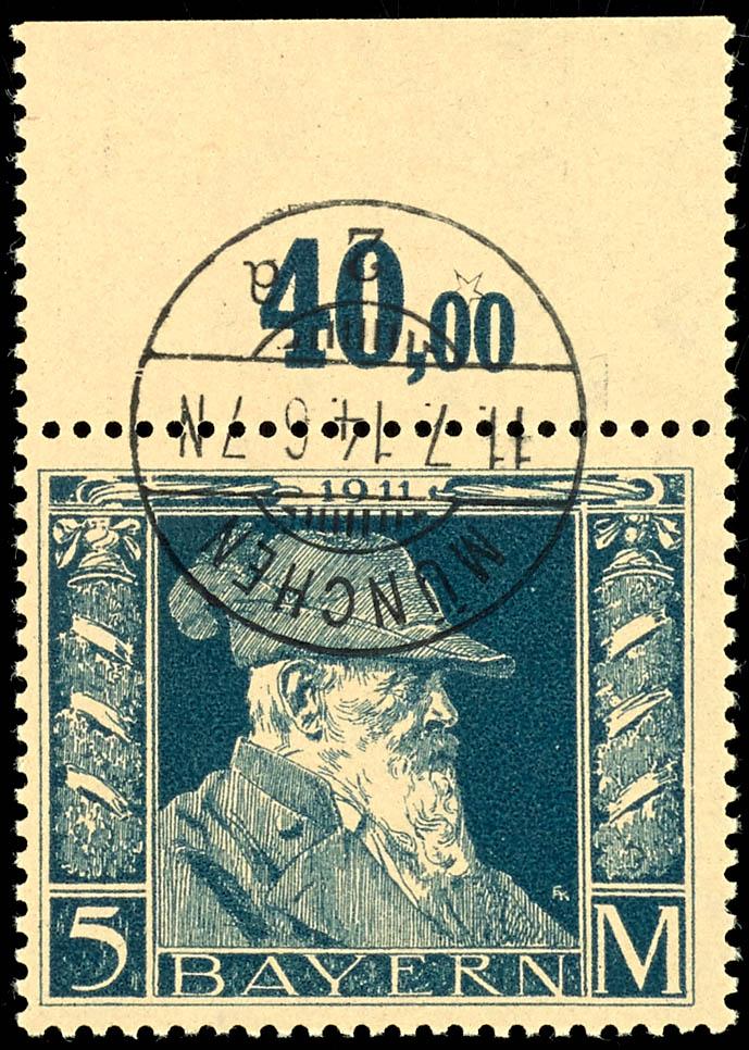 5 Mark Luitpold, Type II, Oberrandstück, klar entwertet "MÜNCHEN 11.7.14", tadellose Erhaltung, geprüft Helbig BPP, Mi. 220.- (Image 1)(Image)