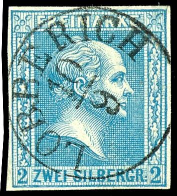 6 Kreuzer brown with centerpiece "interrupted circle" sound unused. according to new photo expertize Stegmueller BPP is the gum not original and a expert signs "Pfenniger" faked. the 4 I is unused the rarest stamp of Bavaria and must by Michel actual a number of a major listing have (see Michel) . even without gum is the stamp a rarity! Michel for without gum 3.500.- (4I) Certificate 6 Kreuzer braun mit Mittelstück "unterbrochener Kreis" tadellos ungebraucht. Laut neuem Fotobefund Stegmüller BPP ist der Gummi nicht original und ein Prüfzeichen "Pfenninger" falsch. Die 4I ist ungebraucht die seltenste Marke Bayerns und müsste im Michel eigentlich eine Hauptnummer haben (siehe Michel). Selbst ohne Gummi ist die Marke eine Rarität! Mi. für ohne Gummi 3.500.- (Image)