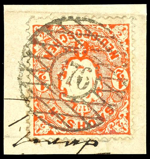 3 silver penny gridded ground yellow orange, full to wide margins horizontal pair on on piece choise copy with cancellation through clearly two ring cancel "COELN 26.8. " (12a(2)) 3 Silbergroschen gegitterter Grund gelborange, voll-bis breitrandiges waagerechtes Paar auf Kabinett-Briefstück mit Entwertung durch klaren K2 "COELN 26.8." (Image)