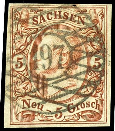 197 - Netzschkau, S.O.T.N on outstanding quality 5 Neugroschen King Johann rust brown (12e) "197" - Netzschkau, klar und zentrisch auf Luxusstück 5 Neugroschen König Johann rostbraun (Image)