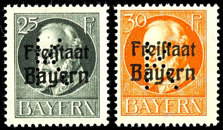 5 pfennigs - 30 pfennigs King Ludwig with punched \K\, six values = complete set, mint never hinged, very fine, photo expertize Dr. Joachim Helbig BPP, Michel 360.- (1/6) Certificate 5 Pfennig - 30 Pfennig König Ludwig mit eingelochtem \K\, sechs Werte = kompletter Satz, postfrisch, tadellose Erhaltung, Fotoattest Dr. Joachim Helbig BPP, Mi. 360.- (Image)