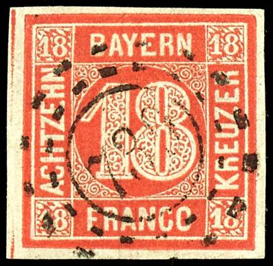 18 Kreuzer vermilion, full margins cut and fresh colours extremely fine copy, cancelled by better open millwheel postmark \780\ PRETZFELD, expertized HK, Michel 220.- (13a) 18 Kreuzer zinnoberrot, vollrandig geschnittenes und farbfrisches Kabinettstück, entwertet mit besserem offenem Mühlradstempel \780\ PRETZFELD , geprüft HK, Mi. 220.- (Image)