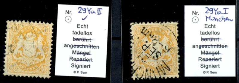 10 Kreuzer crest issue, dark chrome yellow, plate flaw I and II, used, very fine expertized Sem BPP (29YaI,II) 10 Kreuzer Wappenausgabe, dunkelchromgelb, Plattenfehler I und II, gestempelt, tadellose Erhaltung geprüft Sem BPP (Image)