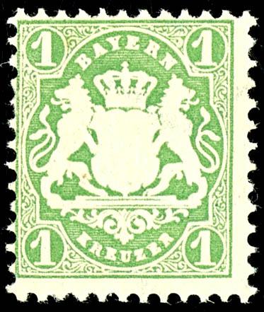 9 Kreuzer lightolive-green, type III with distinctive plate flaw \white dot in the margin line over extended N\, all around having full to wide margins with clean mounted g Mr \243\ - Nuremberg in fresh colours superb condition, twice signed Pfenniger as well abridged certificate with photo Brettl \perfect (5bIIIPFIV) Certificate 9 Kreuzer hellolivgrün, Type III mit markantem Plattenfehler \weißer Punkt in der Randlinie über verlängertem N\, ringsum voll- bis breitrandig mit sauber aufsitzendem gMr \243\ - NÜRNBERG in farbfrischer Prachterhaltung, doppelt geprüft Pfenninger sowie Foto-Kurzbefund Brettl \einwandfrei\ (Image)