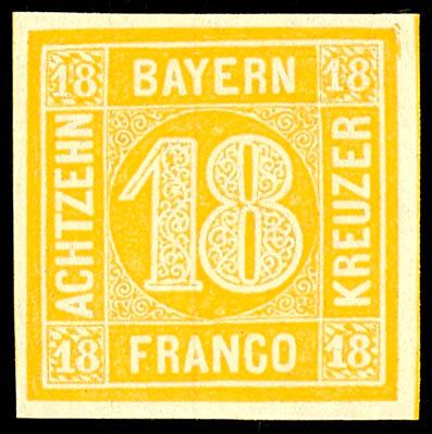 18 Kreuzer yellowish orange, fresh colours and on all sides with enormous margins extremely fine copy, mint never hinged, signed Pfenniger, photo expertize Joh. Ulrich Schmitt BPP \perfect (7) Certificate 18 Kreuzer gelblichorange, farbfrisches und allseits breitrandiges Kabinettstück, postfrisch, signiert Pfenninger, Fotobefund Joh. Ulrich Schmitt BPP \einwandfrei\ (Image)
