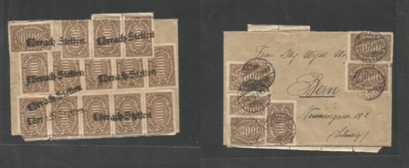 Germany 1921-24. 1923 (29 Aug) Lorrack - Switzerland, Bern. Massive multifkd reverse and front at 60.000 mk rate, reverse stline "Lorrack Stetten". Fine + scarce cds on front. (Image)