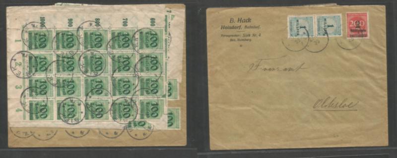 Germany 1921-4. 1923 (27 Oct) Sek - Oldesloe. Reverse and front massive overlapped multifkd envelope at huge rate. Fine and rare hiper inflation days period. (Image)