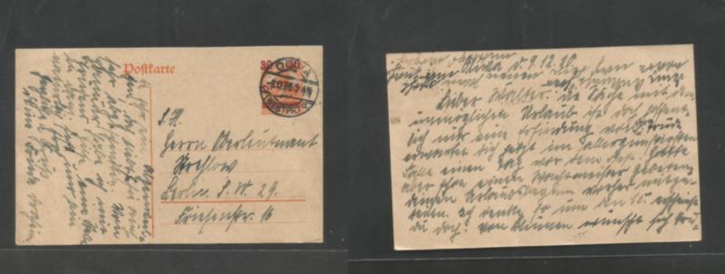 Germany - Danzig. 1920 (9 Dec) Oliva - Berlin, Germany. 30p red ovptd stat card. Fine usage. (Image)