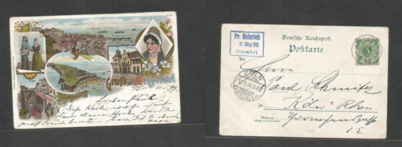 Bc - Heligoland. 1899 (11 May) GPO - Germany, Koln (12 May) Fkd 5pf green. Germany early color litho card. (Image)