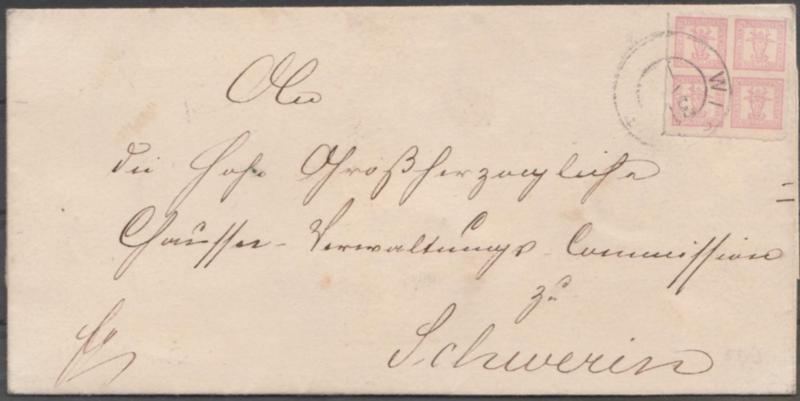 Mecklenburg. 1864 - Lettera diretta Schwerin, affrancata con 4/4 r. rosso n. 8. SPL (Image)