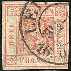 ALLEMAGNE Saxe. No 1, réparé, TB d'aspect. - R (certificat Rismondo) (cote Yvert : 8000 €) (Image)
