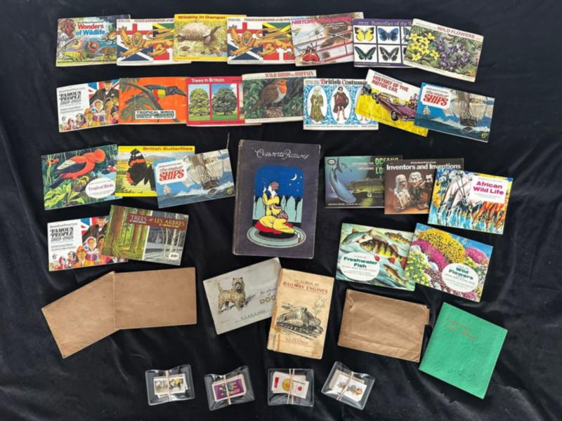 Tobacco and Brooke Bond tea cards, unmounted in albums, mounted in albums and loose, est. Cat. 670 USD, 16 sets unmounted e.g. Players Natural History (50), Animal Heads (50), British Butterflies (50), Products of the World (50) +4 more, Brooke Bond Wild Flowers (50), Freshwater Fish (50), African Wildlife (50), + 2 more, Gallaher Ltd. Wild Flowers (50), Westminster Tobacco Canada first series (13/36), 14 sets Brooke Bond mounted, Trees of North America (Canadian Issue) (48), Wild Birds in Britain (50), British Costume (50) + 11 more, Wills mounted Wild Flowers series 1 & 2, + 4 more, 130 loose 4 series incomplete sets Brooke Bond and John Players. (Image)