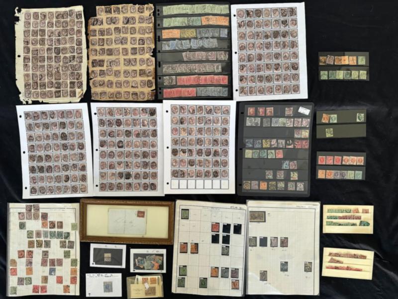 Great Britain 1841-1952, #3 / #291, a mainly used accumulation on leaves and stocksheets, includes #3 on cove (in a picture frame) and #141 (used), Scott value $1638+ duplication, otherwise appears f-vf (Image)