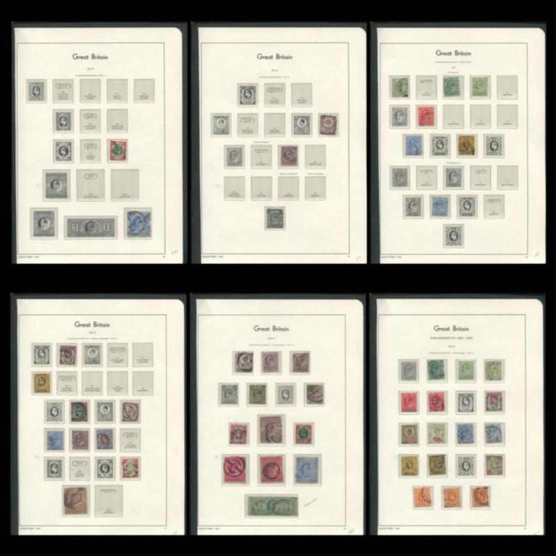 Great Britain 1840-1902 #1/#140 Stamp Collection Cancelled. F-VF. Mainly Victoria postage with some Edward V11, beginning with the classic #1 1 penny black, and many better stamps including #66, 27a, 34, 84, 43, 44, 43a,45a, 39, 57, 139, 141, 144, 87, 78, 81, 169, 178,187,189, 101, 191, 103,104,105 , and much much more. S/C over $14,ooo (Image)