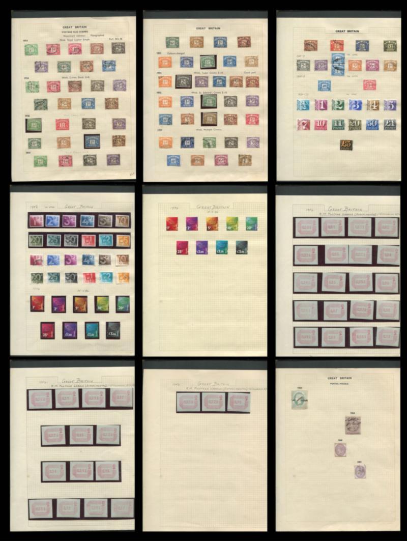 Great Britain - Postage Dues 1914 - 1994, #J1 / #J112,a mainly used collection with the odd MH to complete a set and a Mh group of the Royal mail experimental labels 1/2p to 17p in total 37 labels of various values, Scott value $676, appears f-vf (Image)