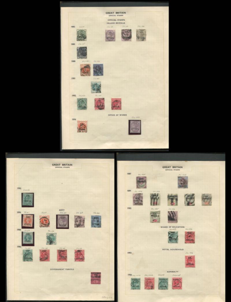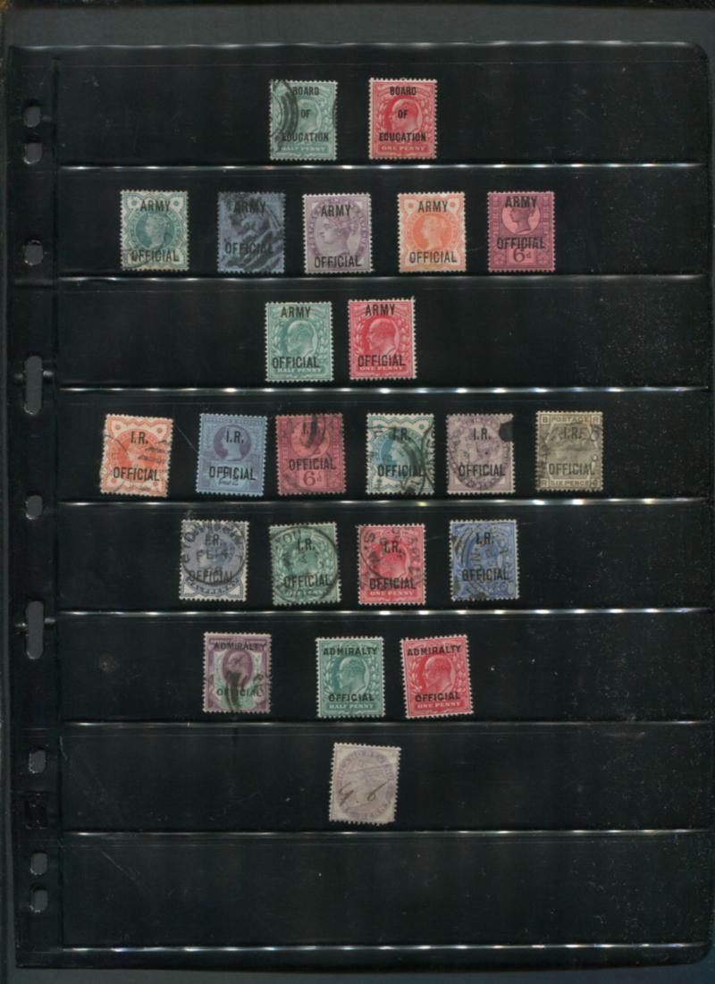 Great Britain - Officials - Army, Inland Revenue, Board of Education, Admirity, a MH and used collection on a stock sheet, Scott value $1434, appears f-vf (Image)
