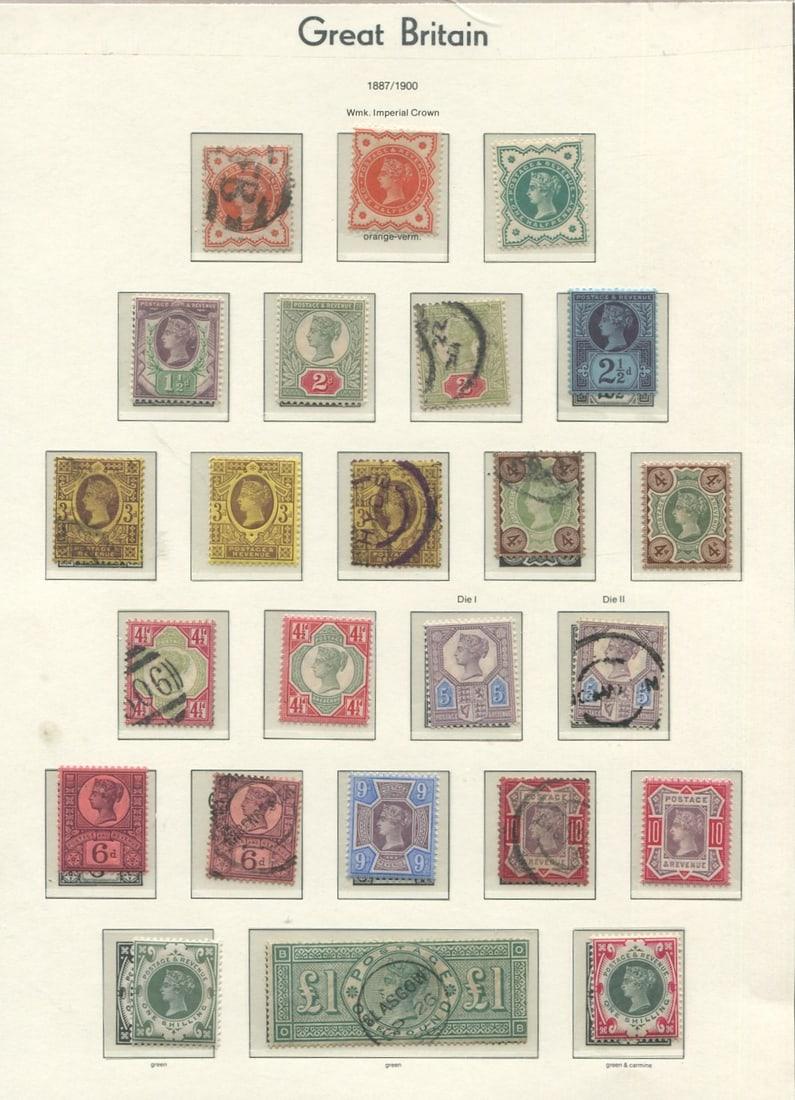 Great Britain 1887-1900, #111 /#126, a MNH / MH and used collection on a pre-printed leaf to £1 ( £1 is trimmed on the right side) scott value $1948, some fault otherwise fine (Image)