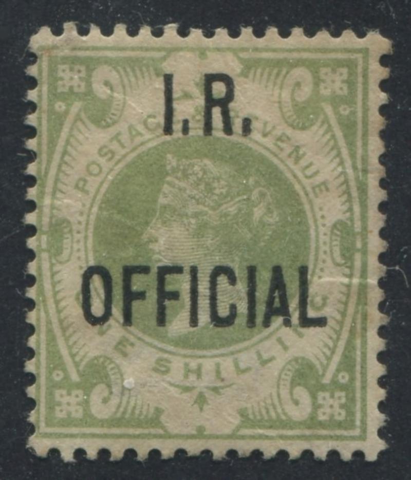 Great Britain 1888 #O12 1sh Dull Green Mint with small HR. Scott- $1,000. (Image)