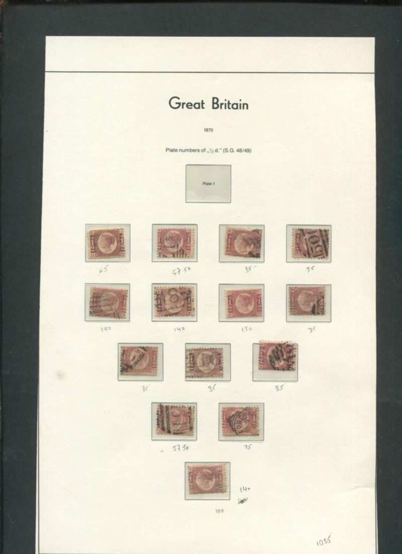 Great Britain 1870 1/2d rose plates 3 -20, a MH and used grouping less the plate 9, Scott value $1035, appears f-vf (Image)