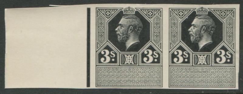 Great Britain 1914?, George V 3/- key plate proof in black, likely to have been used overprinted "Income Tax" at the latter part of WWI, there 10 value to the issue, appears f-vf (Image)