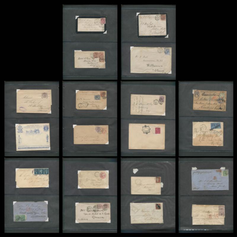 Great Britain 1841 -1892, a group of 20 Victorian cover to oversea destination, including USA, Canada, Germany France with a few within the UK, also nice Pachebot cover to New York, extra fees nice clean lot, appears f-vf (Image)