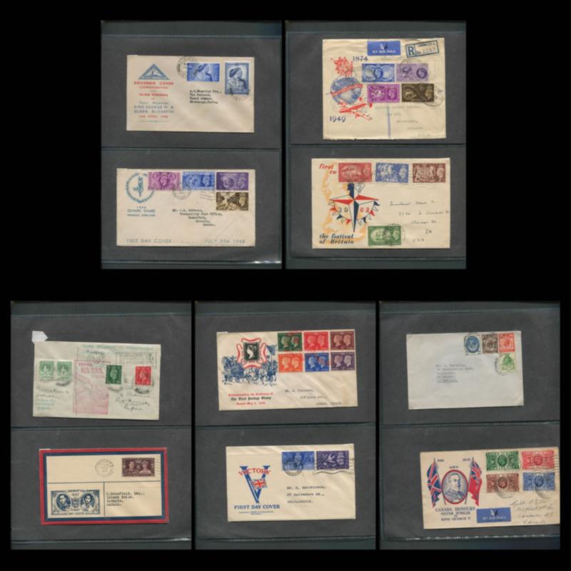 Great Britain a group 10 cover covers/FDCs 1929 - 1951, includes 1929 PUC low values, 1935 silver Jubilee, 1937 Coronation, 1938 Airmail to Australia, 1940 Centenary, 1946 Victory, 1948 Silver Wedding and Olympics, 1949 UPU and 1951 Festival of Britain, nice clean group, appears f-vf (Image)