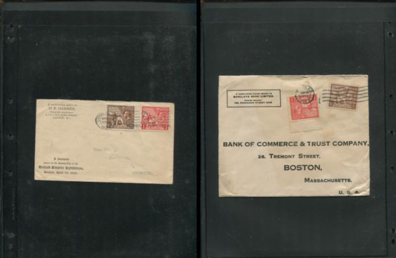 Great Britain 1924- 1925 British Empire Exhibition, two cover date April 23, 1924 (First day of issue) on a HR Harmer, London envelope and June 25, 1925, going to Boston USA, both covers clean SG value £450+, appears f-vf (Image)